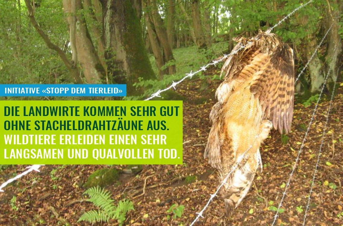 Wildtiere können sich in Stacheldrahtzäunen und unsachgemäss aufgestellten Netzzäunen verheddern. Häufig sterben die Tiere einen sehr langsamen und qualvollen Tod.